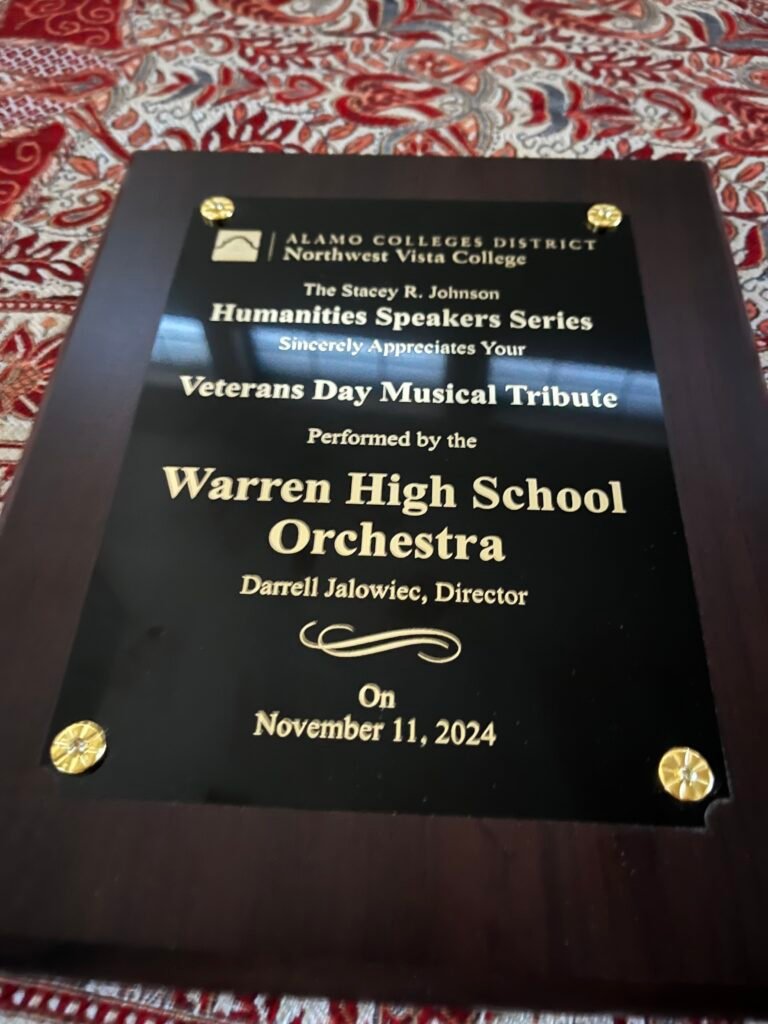 The orchestra also represents Warren at events on both local and national levels, including but not limited to multiple appearances at the Winter Park Music Festival in Winter Park, Colorado, as well as performing the Armed Forces Salute on Veteran’s Day 2024 at Northwest Vista College during an event that featured former US Secretary of Housing and Urban Development Julian Castro.
